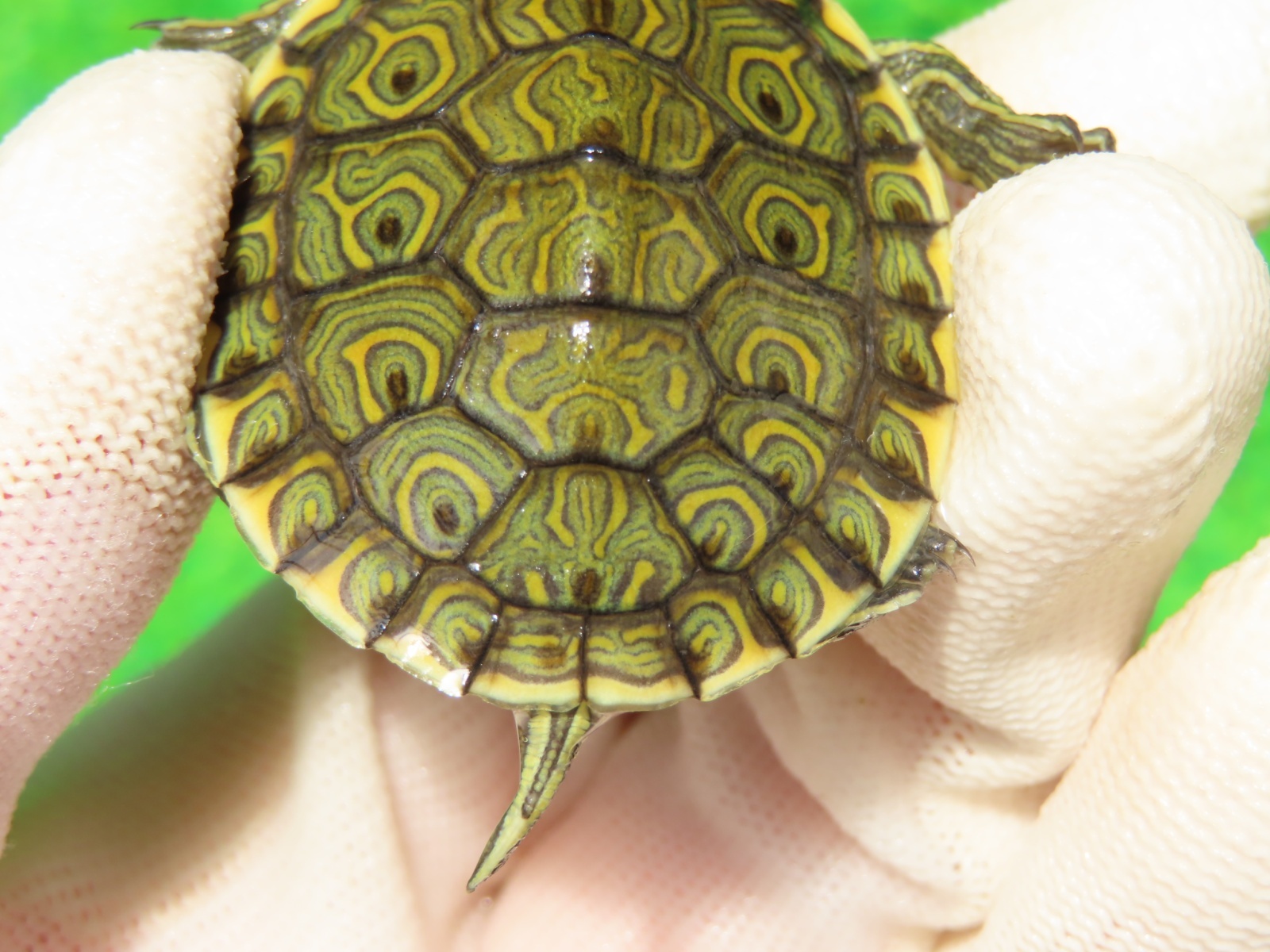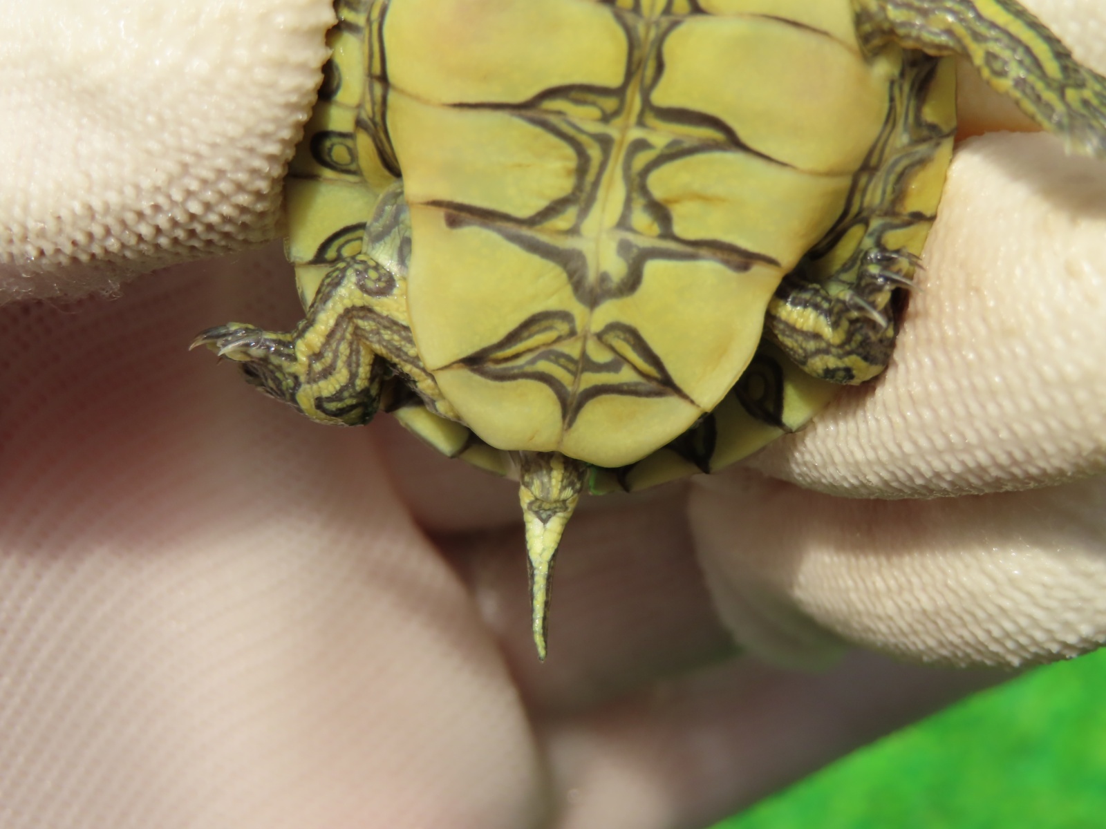 グァテマラクジャクガメ 当店CB38mm 多甲板 ご存じ?世界最大のスライダーと言われる本種、2017USCBベビーからの当店F1です