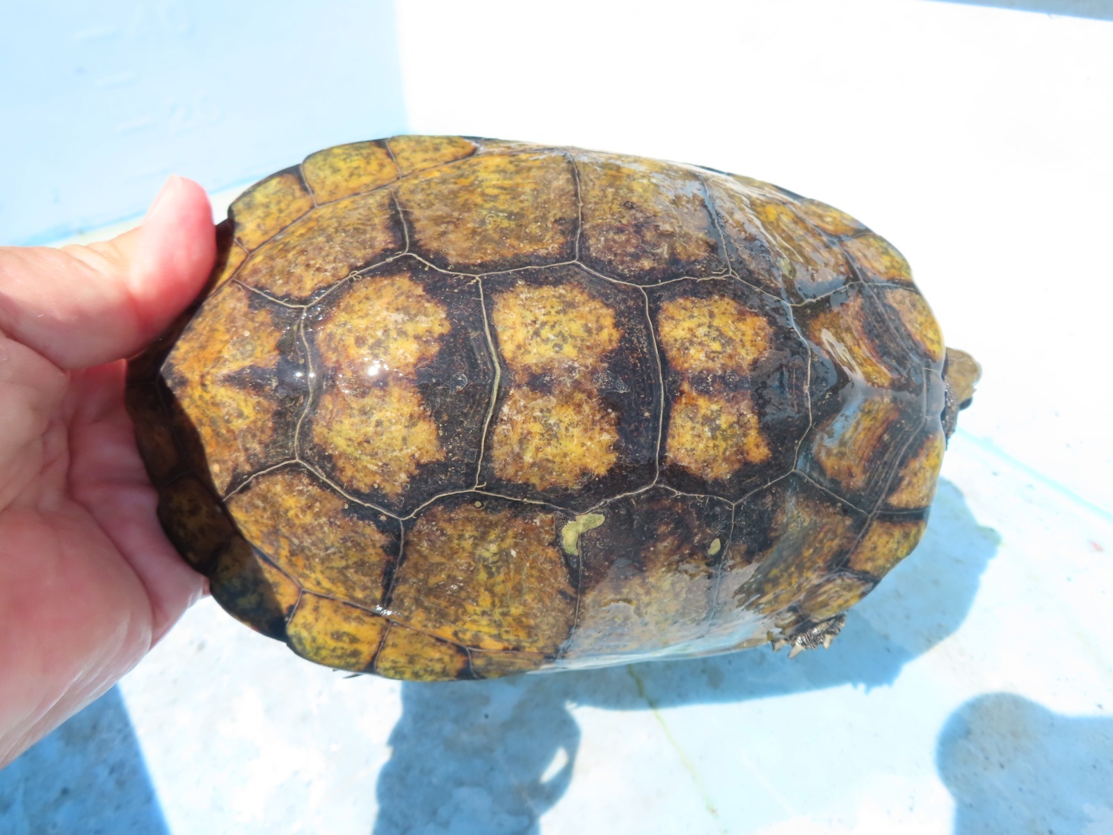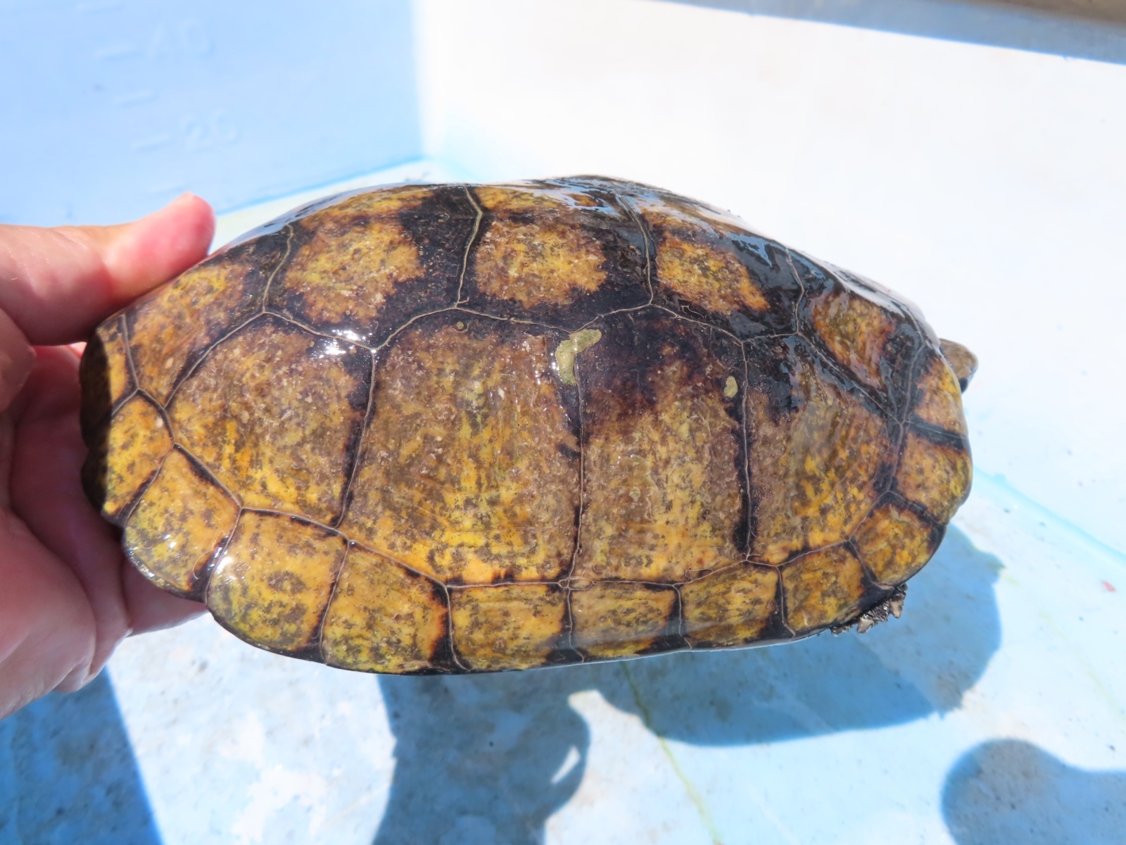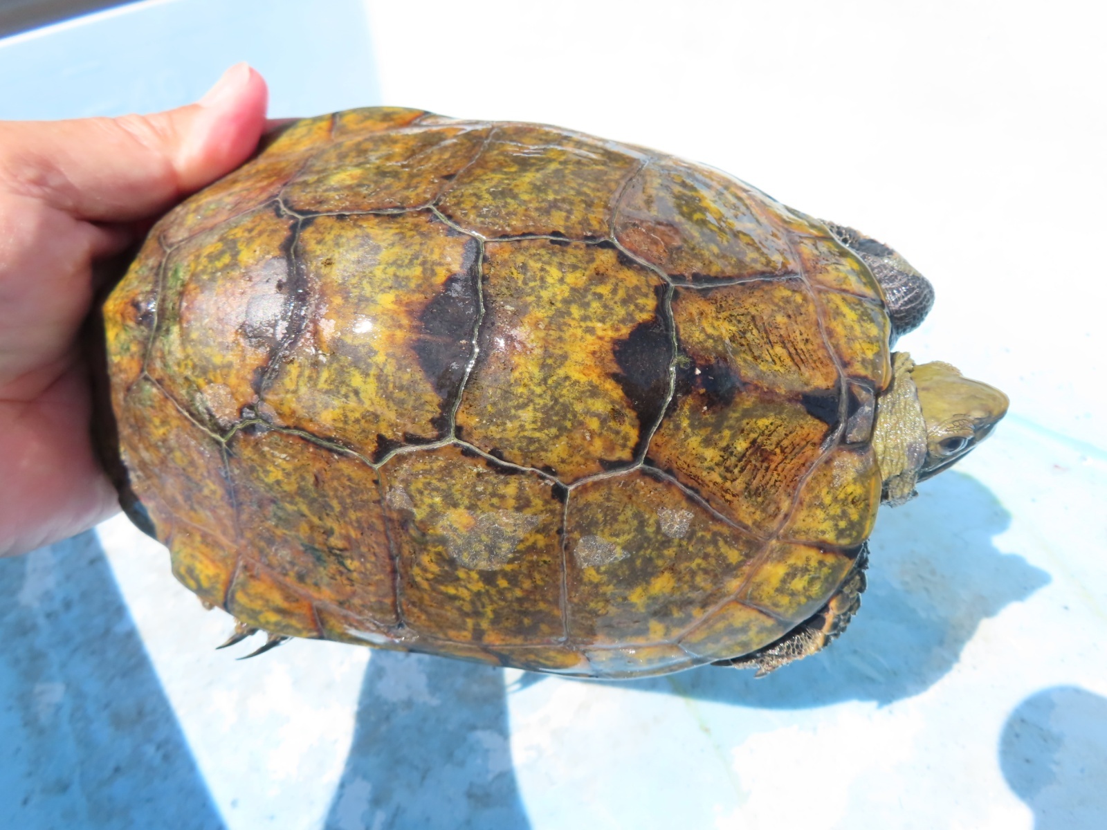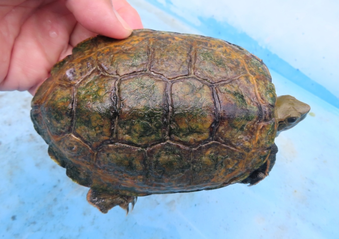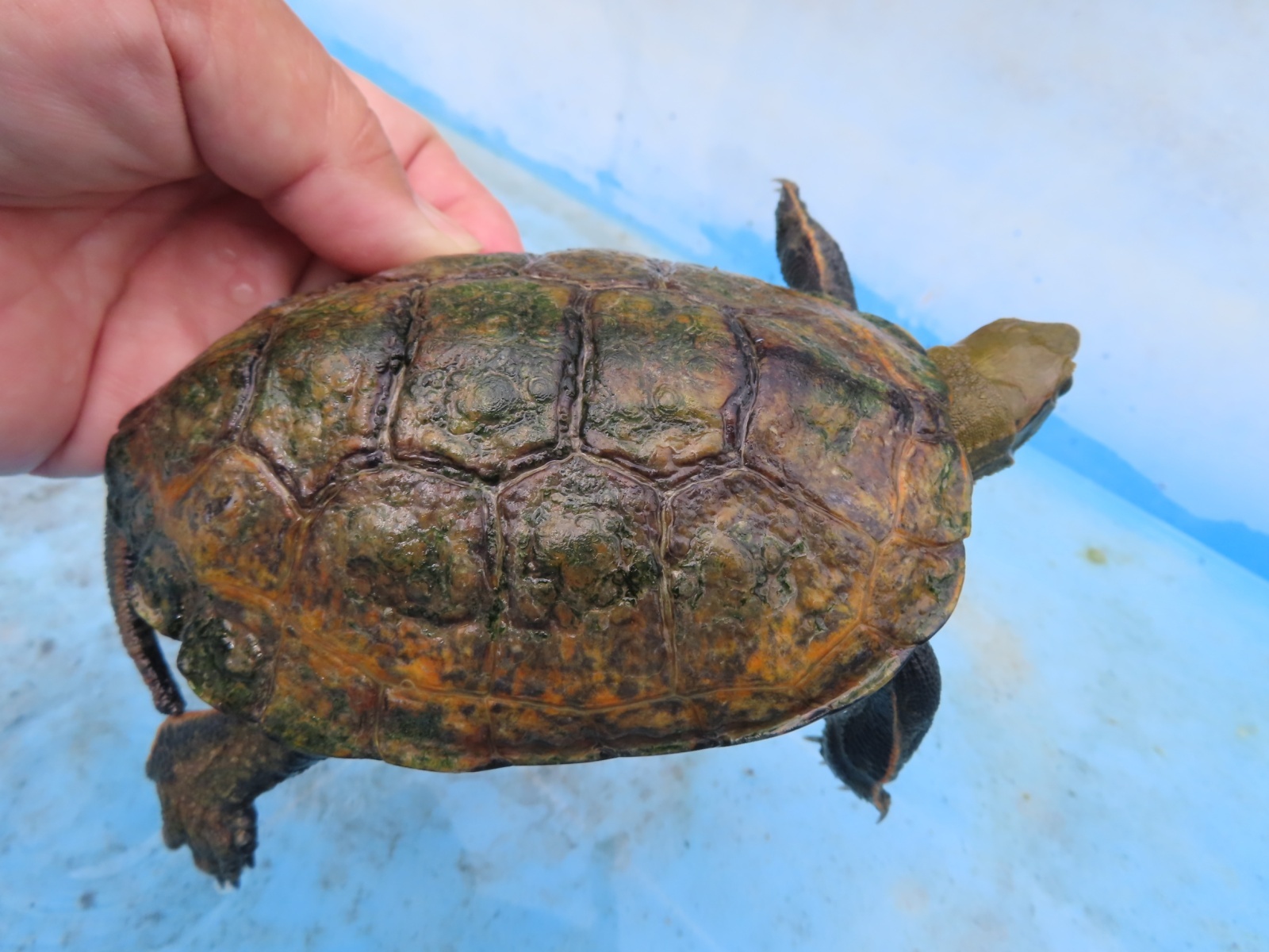 ニホンイシガメ WC長期飼い込み個体 ♂120mm ♀175・185mm 広い当店外池での長期飼い込み個体で、細かなチェックが出来てませんので、ノークレームでお願いします