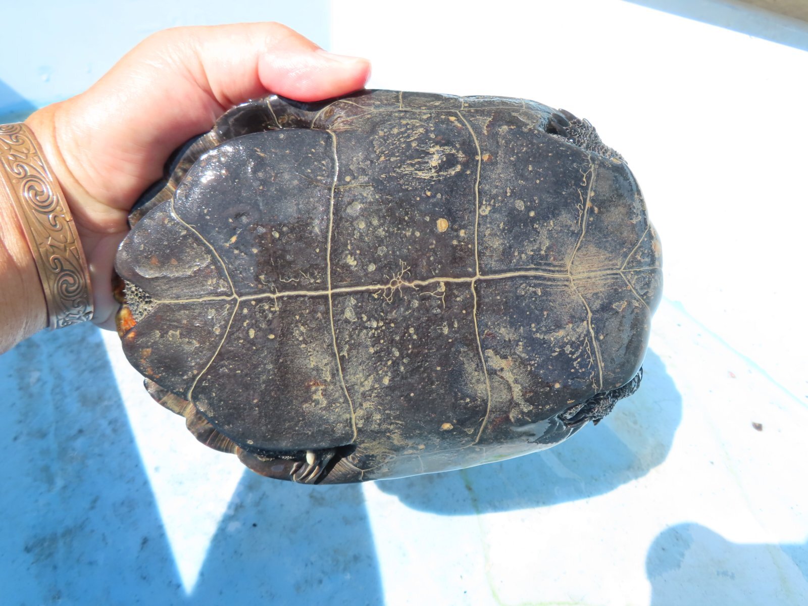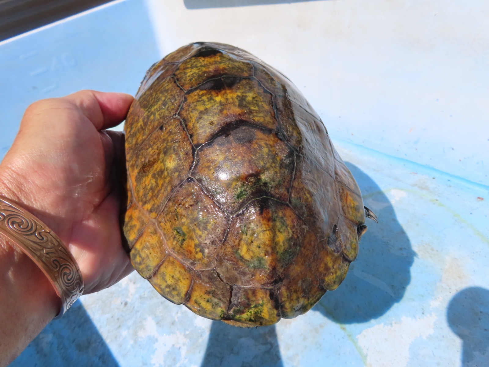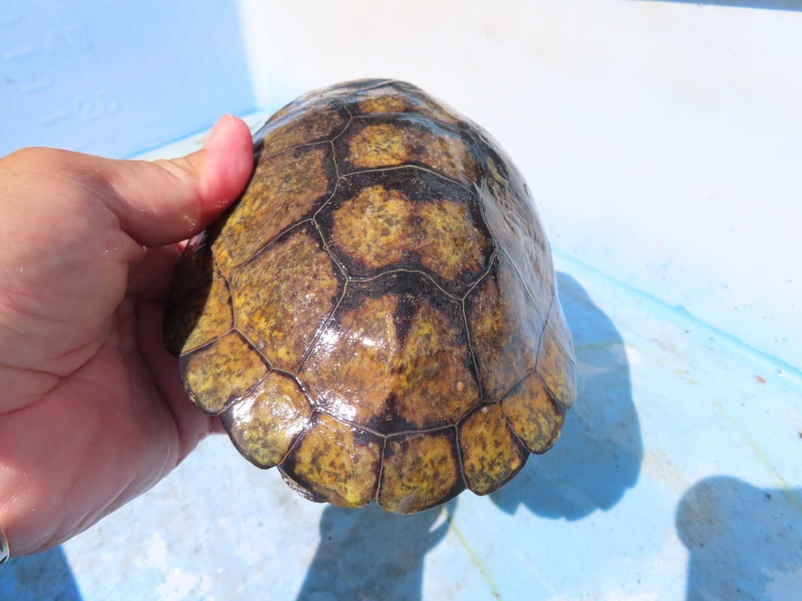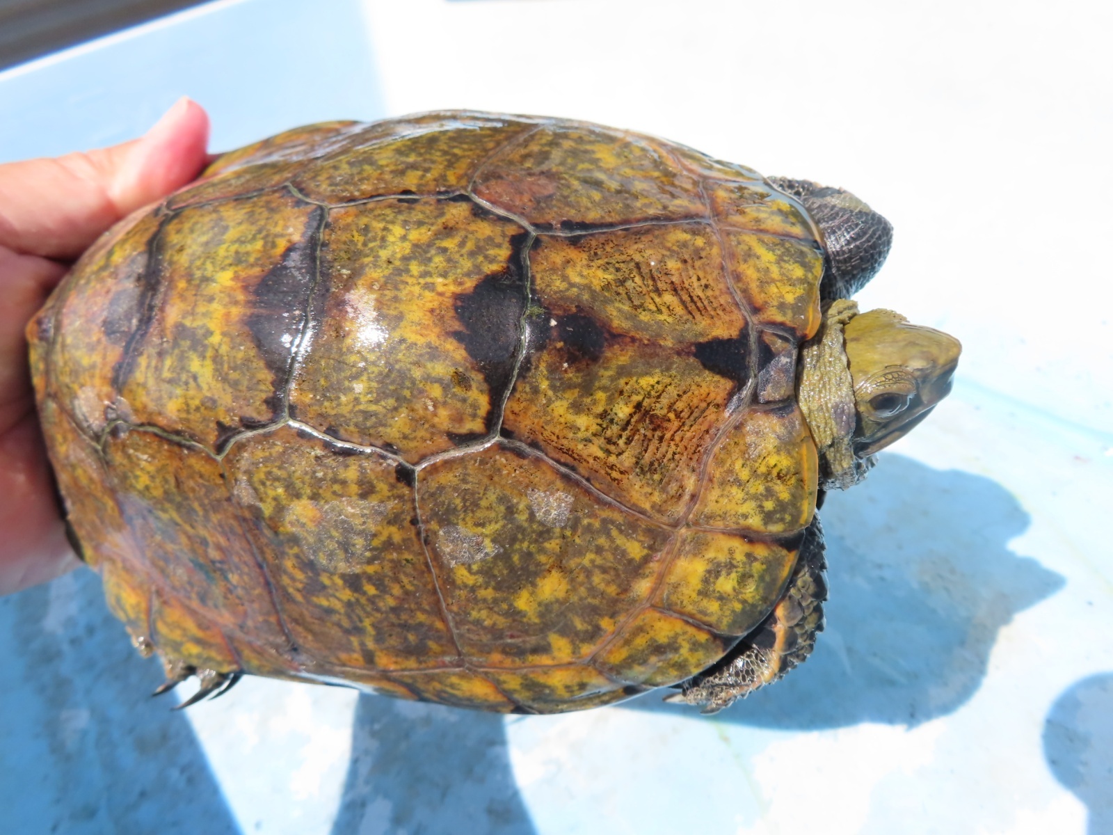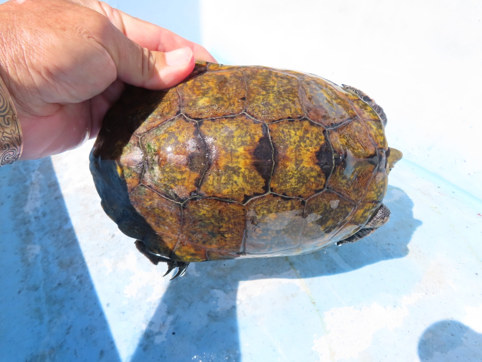 ニホンイシガメ WC長期飼い込み個体 ♂120mm ♀175・185mm 広い当店外池での長期飼い込み個体で、細かなチェックが出来てませんので、ノークレームでお願いします